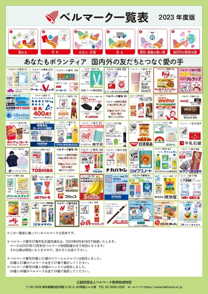 日頃より、ベルマーク収集にご協力いただきありがとうございます。