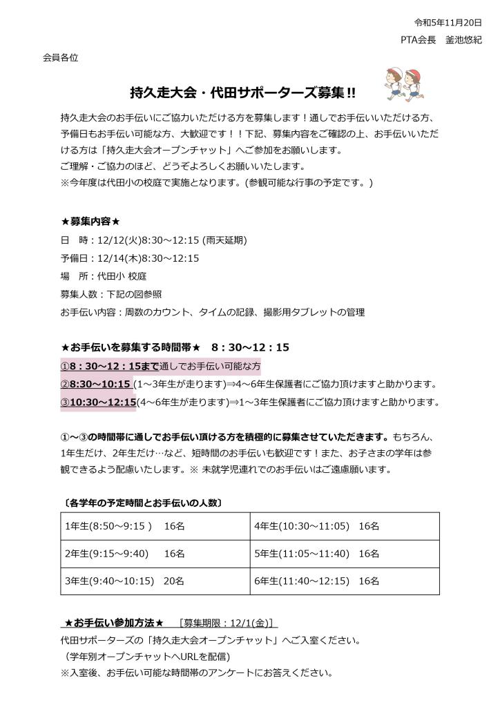 全カテゴリー, 代田サポーターズ代田サポーターズ募集(12月持久走大会) 2023年11月20日2024年1月17日 horiechiemiaphirotacom 共有: X で共有 (新しいウィンドウで開きます) X Facebook で共有 (新しいウィンドウで開きます) Facebook いいね 読み込み中…