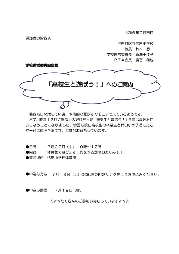 全カテゴリー「高校生と遊ぼう!」へのご案内 2024年7月14日 okysmk 共有: X で共有 (新しいウィンドウで開きます) X Facebook で共有 (新しいウィンドウで開きます) Facebook いいね 読み込み中…